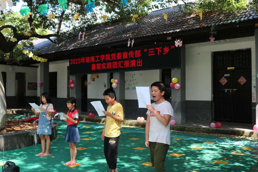 “我和我的祖国,一刻也不能分割”,在常宁市西岭镇平安小学拉开了党委宣传部赴常宁市西岭镇开展“大中小思政一体化建设,培育时代新人”暑期社会实践活动汇报演出的序幕。