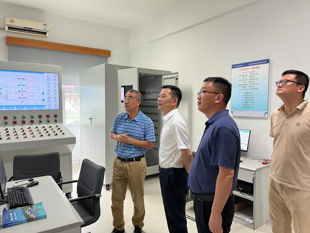 在中广核研究院,曹执令看望了安全与管理工程学院、人因与安全工程研究院利用暑期在核电厂现场开展科研项目工作的教师。曹执令亲切询问他们项目工作的进展情况、实验进度及成果、在大亚湾核电厂的生活情况等,他勉励大家战胜酷暑、努力拼搏,争取产出更多高水平成果。驻核电现场开展科研工作的教师易灿南、陈帅、汤雅沁分别向曹执令汇报了项目工作情况。