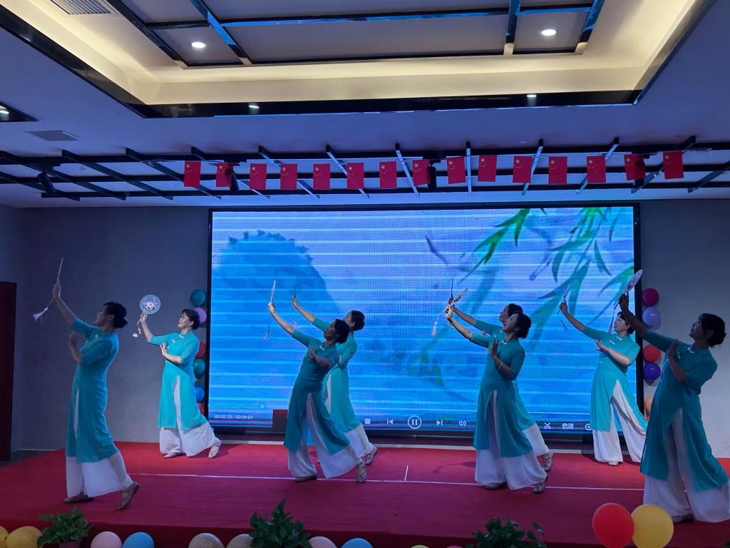 离退休各支部还精心组织了文艺表演,《月亮女神》等集体舞蹈风格各异,《永远跟党走》等散文、诗词朗诵激情澎湃,《十送红军》等二胡、电吹管乐器表演引人入胜,《我们的生活充满阳光》等集体大合唱唱出温暖和希望……退休老同志们以通过不同的形式,抒发着对党的感恩之情和对美好生活的向往。