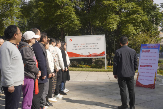 在“全国唯一廉政广场”衡阳市廉政文化雕塑园,党员干部参观了警钟楼、清风亭、廉政名人塑像、景像壁刻等,领会廉洁文化雕塑背后令人警醒的历史故事。大家在塑像前时而凝视,在壁刻前时而默念。在警钟楼下,该院院长罗建新领诵,大家集体诵读《中国共产党廉洁自律准则》,并接受廉政集体谈话。