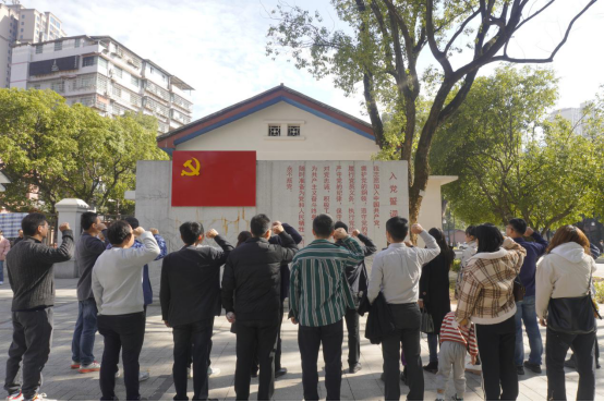 党员干部在中共湖南省立第三师范学校支部革命历史陈列室坪前重温入党誓词