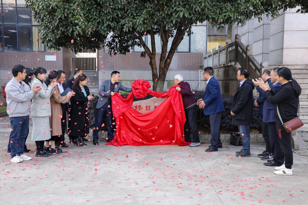 与会人员共同为90级硅酸盐工艺班认捐树举行揭牌仪式,并合影留恋。(文/罗维 图/大学生通讯社 审稿人/一审:彭婷 二审:彭国柱  三审:肖中云)