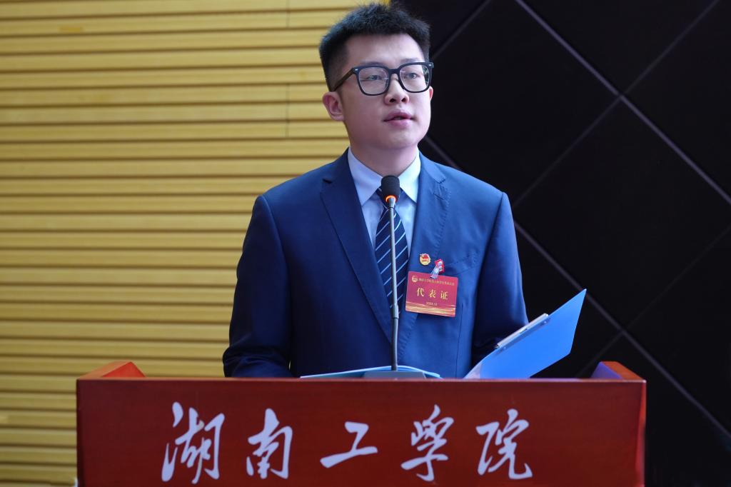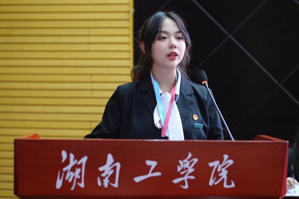 湘潭大学学生会主席团成员叶杨峣同学代表兄弟院校学生会致贺词