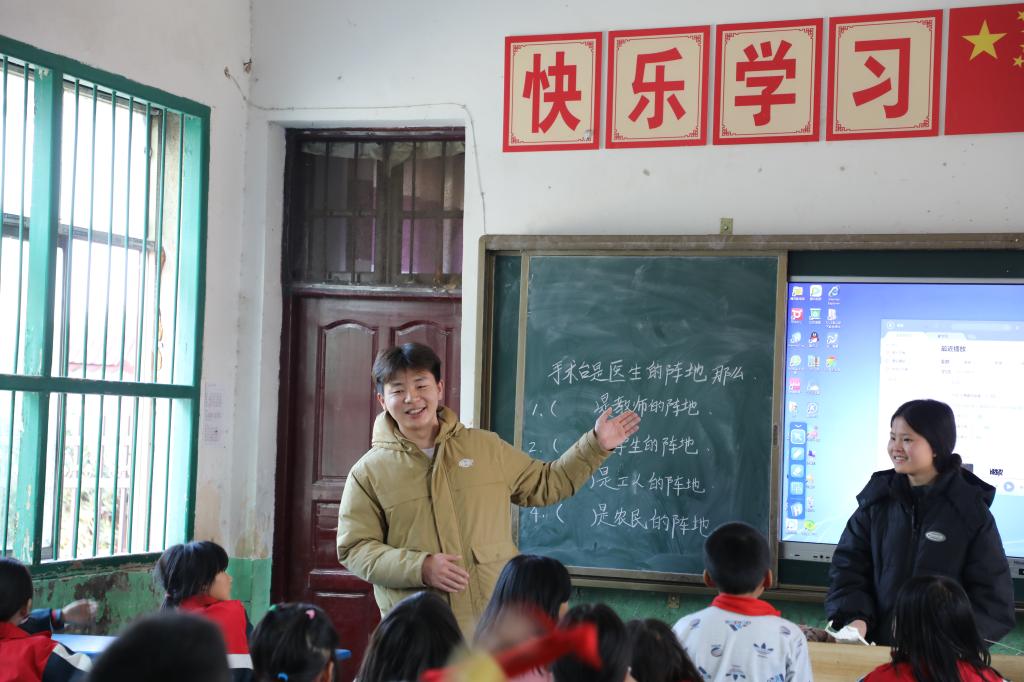 本次送教活动准备了2堂课。音乐支教老师程斌用《是女儿是妈妈》《笑起来真好看》等歌曲,讲述歌曲的背景和故事,通过聆听欣赏、模唱、合唱等方式,让孩子们积极参与、愉悦体验,深深触动孩子的心灵,陶冶学生的情操,培养孩子对音乐的热爱之情。