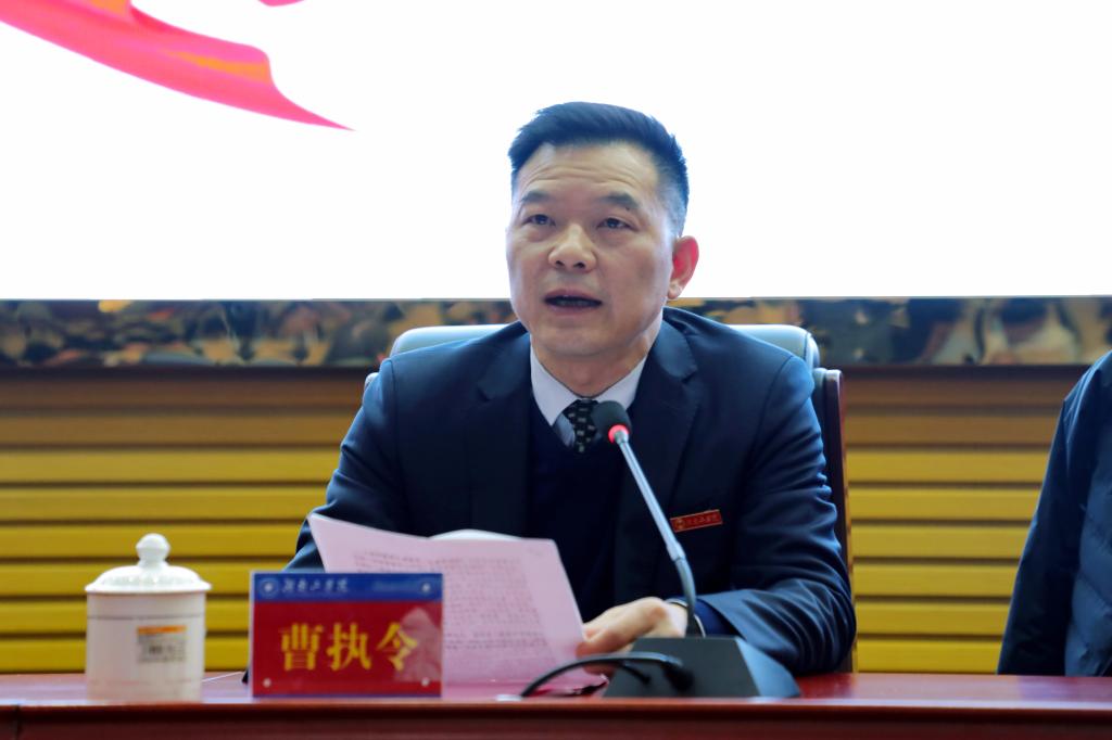 学校党委副书记、校长曹执令在讲话中充分肯定了本次荣获表彰的优秀学生和先进集体的表现,并以《立大志 厚积累 勇奋进 再扬帆》为题寄语湖工学子,希望同学们以奋进之目标力,志当存高远;以奋进之行动力,笃行而专精;以奋进之坚持力,逐梦再扬帆,时刻铭记“无私奉献、开拓进取、睿智圆融、追求卓越”的湖工精神,立大志、厚积累、勇奋进、再扬帆,为自己更有价值和意义的人生,为中华民族的伟大复兴,再接再厉,学有所成!