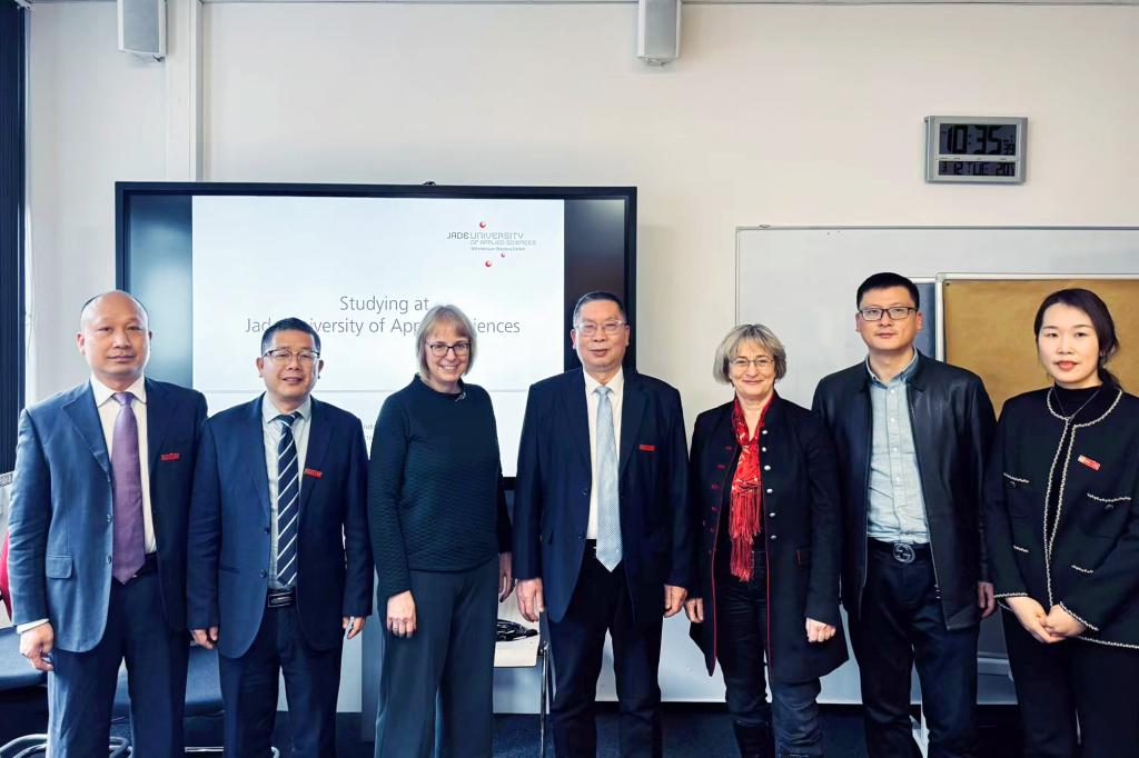 在德国雅德大学访问期间,刘龙昌一行受到雅德大学副校长Juliane Benra教授的热烈欢迎。双方就应用型人才培养、教学模式、校企合作开展模式、师资队伍建设和学生实习就业等相关事宜进行了友好交流。访问团参观了雅德大学威廉港校区的校园、实验室与创新创业园地,与雅德大学的师生进行了交流,深入了解了在校生的生活、住宿、学习情况,以及学校的课程设置、实践教学、专业建设等情况。