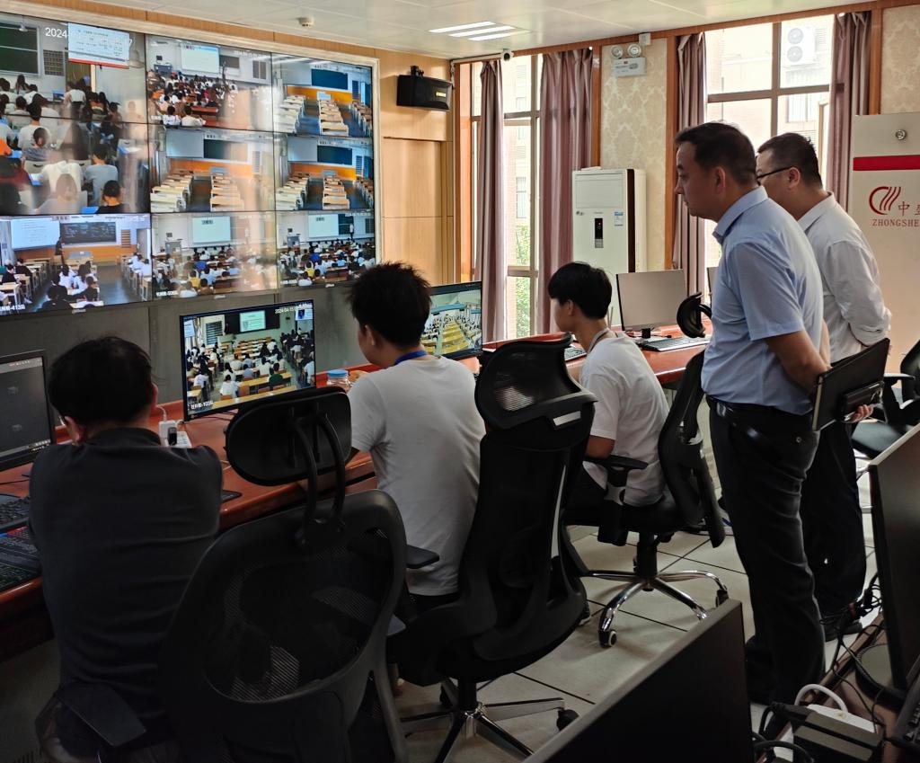 曾广胜一行首先来到教学管理系统主控室,通过监控大屏实时查看全校教师上课情况、学生出勤情况、课堂教学情况以及教学设施设备运行情况,并随机查看了部分监控教室的实时影像。曾广胜要求,要进一步加强学校教风学风建设,加强课堂管理,规范课堂秩序,重视课堂纪律情况反馈,营造齐抓共管的良好教学氛围,守好教育教学、人才培养的课堂主阵地。
