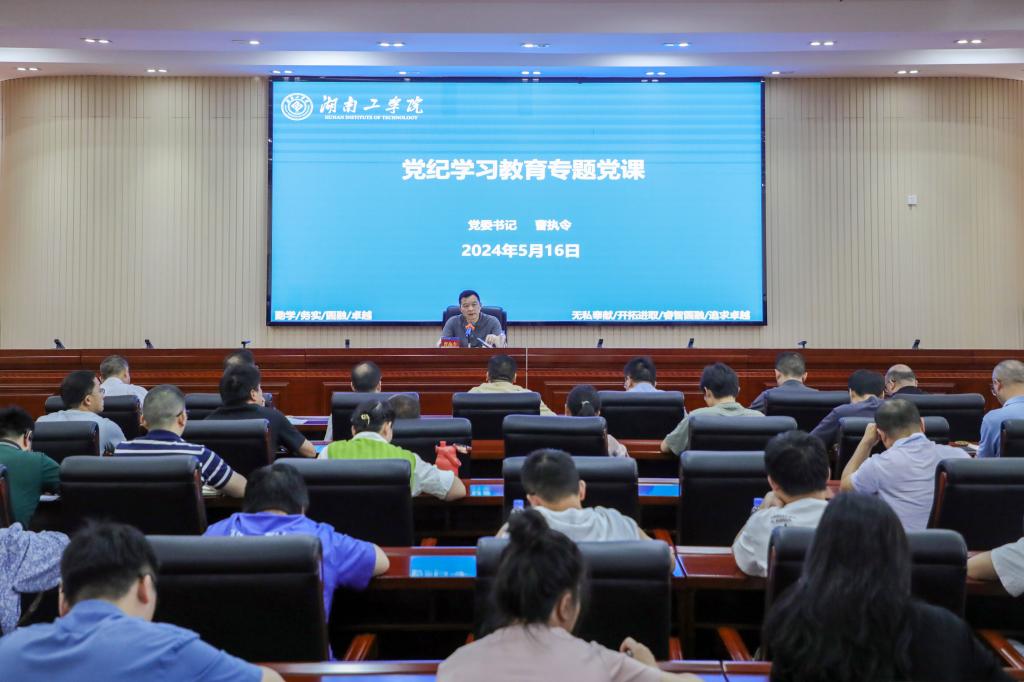 5月16日下午,校党委书记曹执令在学校船山报告厅,以“严守党的纪律规矩 担好教书育人使命”为题,给分管部门和联系单位的党员讲授党纪学习教育专题党课。
