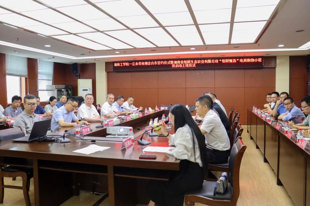 会上,何建雄与陈继康签署了校地战略合作协议,与湖南恒鲜生态农业有限公司董事长罗光德签署了校企战略合作协议。
