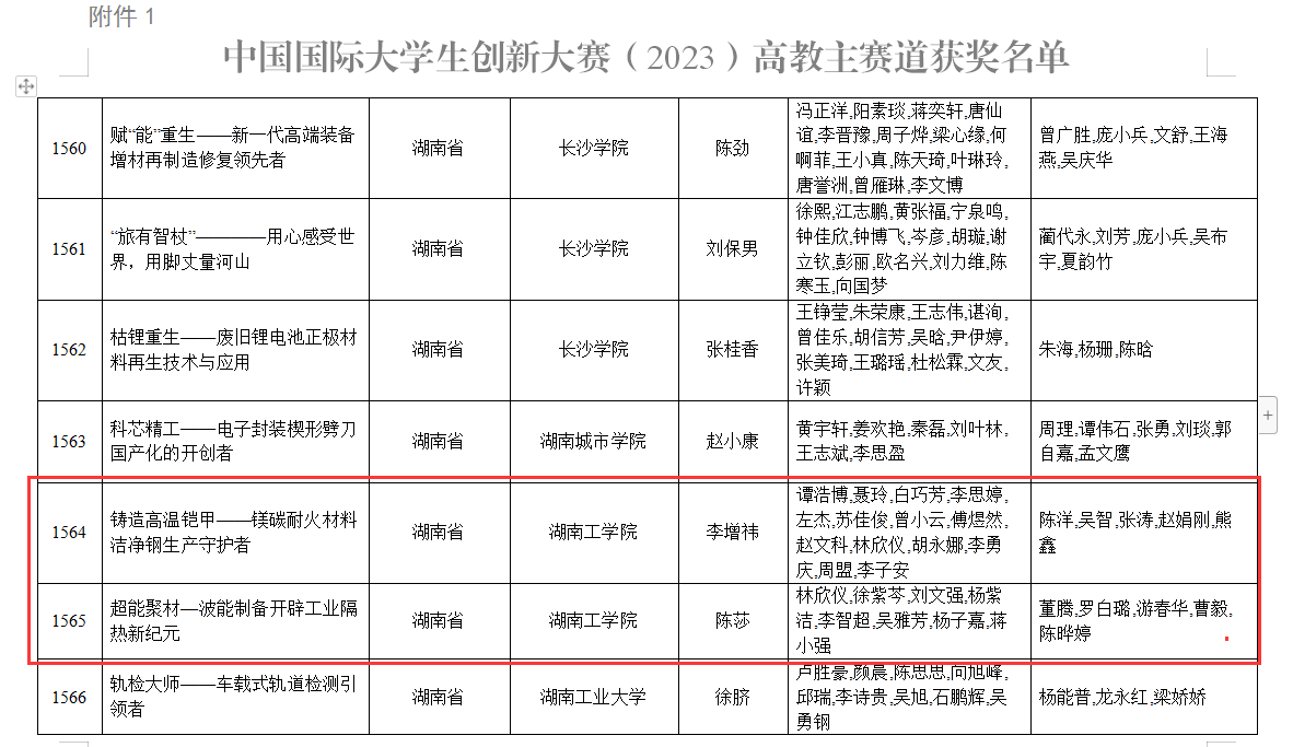 近期,教育部公布中国国际大学生创新大赛(2023)获奖名单,英国上市公司官网365《超能聚材—铝盐废渣制备节能建材技术领航者》和《铸造高温铠甲——镁碳耐火材料洁净钢生产守护者》项目均荣获国赛铜奖,两个项目均为首次参赛便斩获殊荣。同时,在湖南省教育厅发布的第九届湖南省“互联网+”大学生创新创业大赛获奖通报中,英国上市公司官网365亦荣获省赛一等奖1项、二等奖2项、三等奖6项,总成绩在湖南省同类高校中名列前茅。