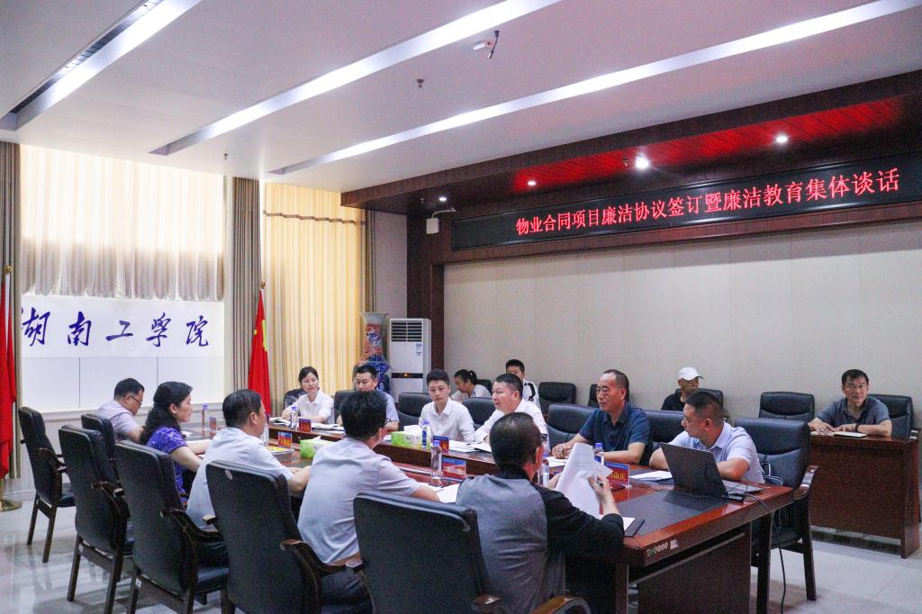 黄红卫在讲话时强调,一是要提高思想认识。物业公司和学校双方要充分认识开展项目廉政教育的必要性和重要性,加深对廉洁教育的认识,提高政治站位,严守规矩和纪律,相互监督,构建“亲清关系”,杜绝廉政风险发生;二是要加强廉洁教育。物业公司要全面加强内部廉洁教育、安全保密教育,在经济合同中全面实行廉洁承诺,通过教育、承诺、监督,努力营造风清气正的政治生态和良好的发展环境,筑牢廉洁根基;三是要严格遵守廉洁制度。双方要严格遵守学校规章制度,按照合同承诺,各司其职,相互协助,保质保量提供优质服务,助推学校高质量发展。(文/彭国柱 图/李琪 审稿人/一审:李琪 二审:彭国柱 三审:肖中云)