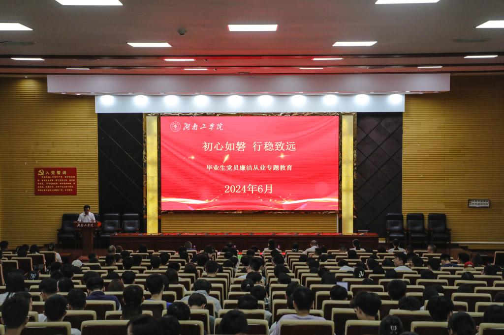 6月3日晚,学校纪委在明翰报告厅为2024届毕业生党员举行以“初心如磐 行稳致远”为主题的廉洁从业专题教育,校党委委员、纪委书记王艳琼出席教育活动,校党委组织部、党委宣传部、团委等部门负责人、二级学院党委副书记及毕业生党员代表共500余人参加了此次活动,活动由校党委委员、纪委副书记袁勤主持。
