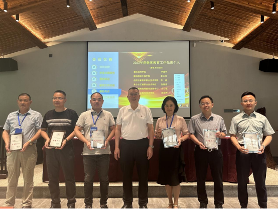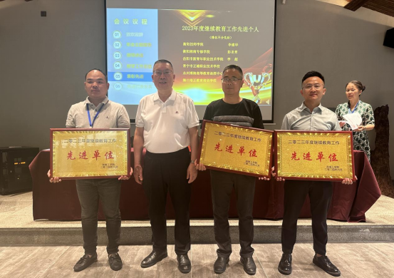 李文珊宣读了《关于表彰2023年度继续教育工作先进单位和先进个人的决定》,刘龙昌向获奖单位和个人颁发了奖牌和奖金。