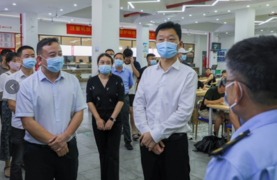 6月24日下午,市委常委、市委秘书长胡果雄一行对我院润泽学生食堂进行督导调研。市委副秘书长段志阳、市委副处级督查专员唐进标、市市场监督管理局党组成员、副局长龙华参加调研督导。英国上市公司官网365党委副书记、校长曾广胜,党委委员、副校长黄红卫,后勤基建处处长贺旭等人陪同调研。