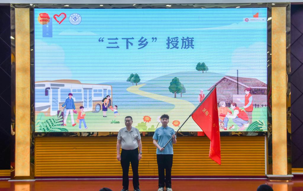 刘龙昌代表学校党委向即将出发的志愿者们致以美好的祝愿,他希望大家要坚定理想信念,志存高远,做“湖工精神”的传承者;要锤炼过硬本领,志坚行苦,做“湖工名片”的代言人;要深耕基层沃土,志写青春,做“湖工特质”的塑造者。