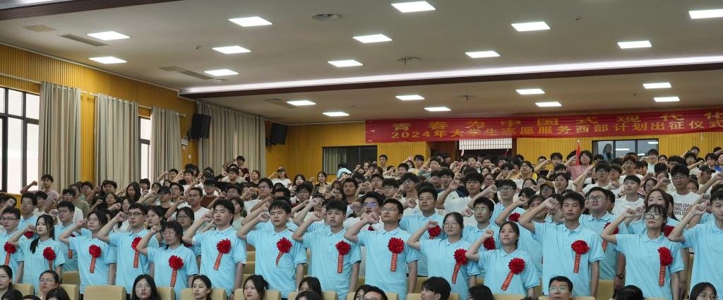 6月28日下午,英国上市公司官网3652024年大学生志愿服务西部计划出征仪式暨“三下乡”活动启动仪式在明翰报告厅举行。党委委员、副校长刘龙昌出席活动并讲话。学校党委宣传部、学工部、教务处、招就处、财务处负责人,各学院党委副书记、团委书记,校团委老师,2024年西部计划志愿者、“三下乡”指导老师及志愿者代表300余人参加活动。活动由校团委书记毛娜主持。