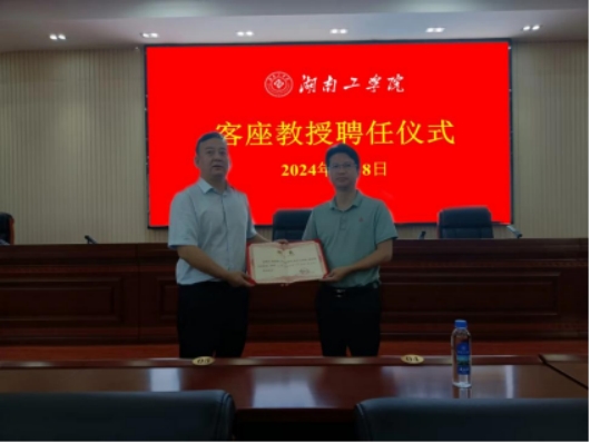 7月8日,英国上市公司官网365客座教授聘任仪式在船山报告厅举行。党委副书记、校长曾广胜教授为湘潭大学教授、宁乡市科技副市长(挂职)杨秀康颁发客座教授聘书。