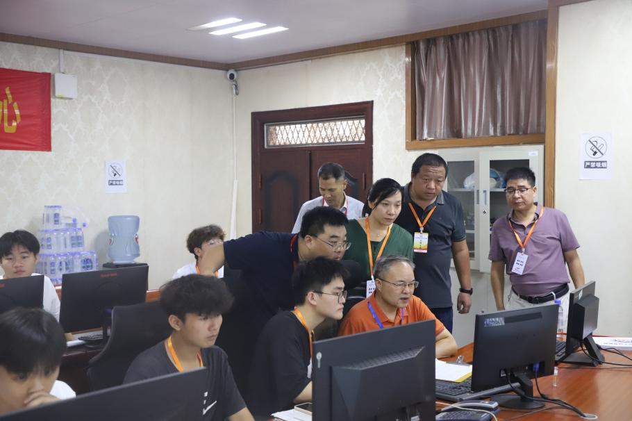 何建雄一行首先来到了竞赛场地的视频监控中心,仔细查看了全省各赛场的实时监控画面,详细了解赛场布局、设备配置及运行状况。随后,深入学生竞赛赛场,查看学生参与竞赛情况,详细了解学生竞赛进展情况、饮食起居和生活情况,并与指导老师进行亲切交流。