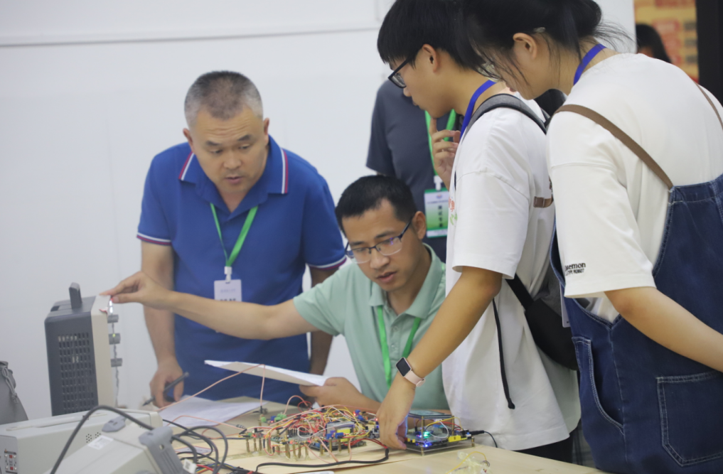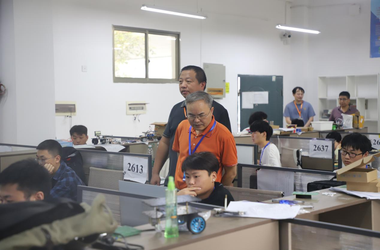 7月29日至8月1日进行为期四天三夜的作品制作,竞赛设立AC-AC变换电路并联运行(A题)、单相功率分析仪(B题)、无线传输信号模拟系统(C题)、立体货架盘点无人机系统(D题)、三子棋游戏装置(E题)、磁悬浮实验装置(F题)、简易录音屏蔽系统(G题)、自动行驶小车(H题)八个赛题。参赛队伍自主选择赛题并在规定时间内完成理论分析设计及实物制作以及撰写相应的设计报告。校党委副书记何建雄莅临竞赛现场,对赛事的筹备与进行情况进行了全面而细致的检查与指导。