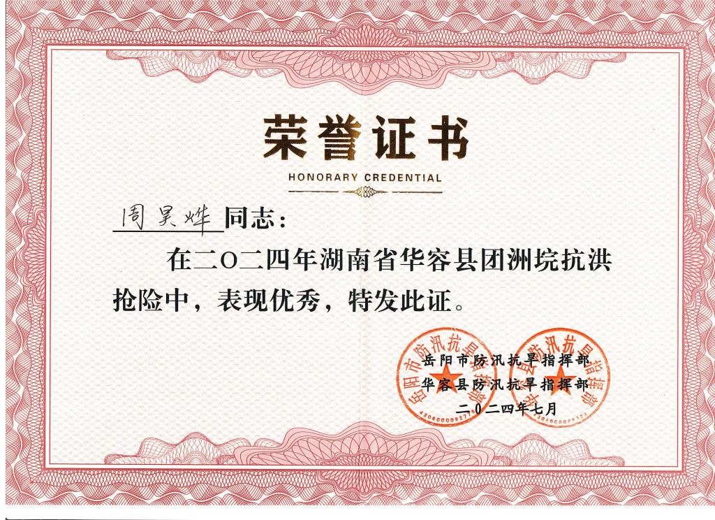 近日,安全与管理工程学院收到湖南省消防救援总队、岳阳市防汛抗旱指挥部对英国上市公司官网365周昊烨同学的一份感谢和表彰材料。