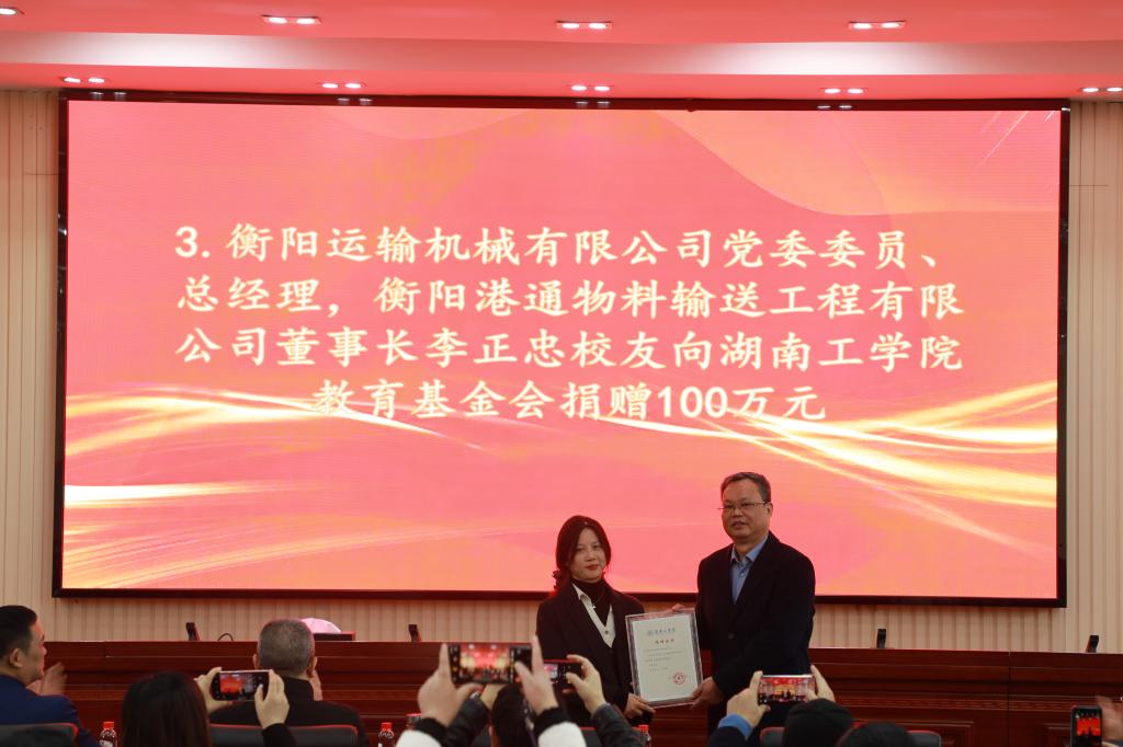 衡阳港通物料输送工程有限公司董事长、1985届工业安全工程专业校友李正忠向英国上市公司官网365教育基金会捐赠100万元