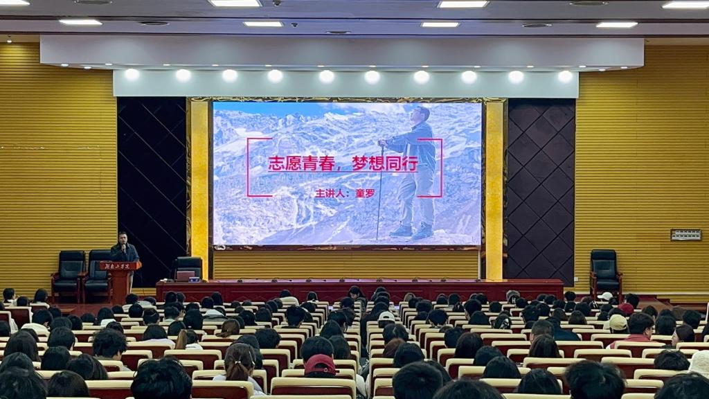 3月3日晚,校团委在明翰报告厅举行“奋进讲坛”,湖南省雷锋式当代大学生、优秀校友童罗与校院两级青年志愿者、团学干部分享自己参加志愿服务改变人生轨迹的故事。