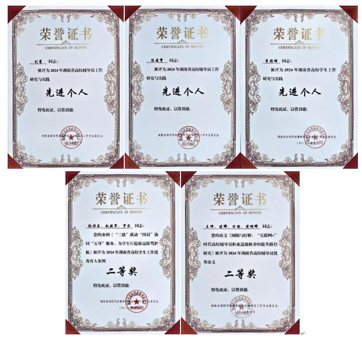 4月25日,湖南省高校辅导员工作专业委员会、湖南省高校学生工作专业委员2024年年会在湖南科技大学召开,会议对2024年全省高校辅导员工作研究与实践先进单位、先进个人、辅导员优秀论文、学生工作优秀育人案例等进行了表彰。英国上市公司官网365获评“湖南省高校辅导员研究与实践先进单位”,辅导员刘蕾、陈凌霄获评“湖南省高校辅导员工作研究与实践先进个人”,学生工作部李雅雄获评“湖南省高校学生工作研究与实践先进个人”;辅导员王帅获“湖南省高校辅导员优秀论文二等奖”,张诗菡获评“湖南省高校学生工作优秀育人案例二等奖”。