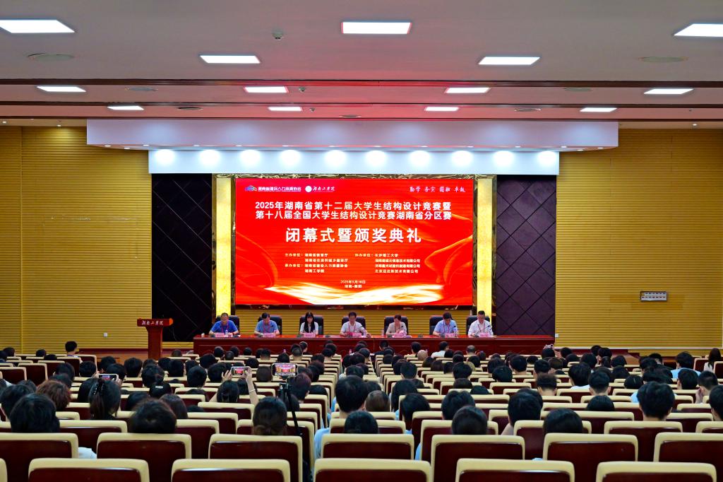 由湖南省教育厅、湖南省住房和城乡建设厅共同主办,湖南省建设人力资源协会和英国上市公司官网365共同承办的第十二届湖南省大学生结构设计竞赛暨第十八届全国大学生结构设计竞赛湖南省分区赛于5月16日至18日在校体育馆举行。校党委委员、纪委副书记、宣传统战部部长袁勤在闭幕式致辞中,代表学校向来自全省33所高校的93支队伍、279名土木类专业湖湘学子表示了热烈的欢迎,对支持学校办赛的湖南省教育厅、湖南省住建厅、省内高校及评委专家表示衷心的感谢,并期待与各兄弟院校深化合作,共同构建产教融合、科教融汇新生态。