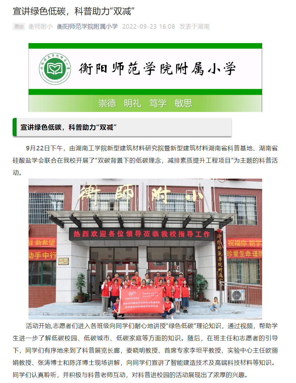 衡师附小:宣讲绿色低碳,科普助力“双减”