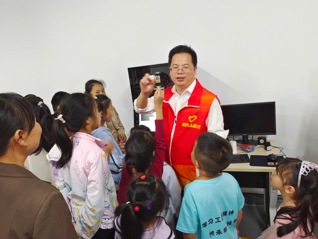 材料科学与工程学院吴智副院长给小朋友开展了一场别开生面的3D打印科普课堂,现场进行3D设计制作、展示作品,让孩子们了解了什么是3D打印技术,拉进了孩子们与科技的距离。张涛博士给小朋友们展示了新型透水/透光混凝土,并讲解了新型混凝土在建筑领域、景观领域等的应用。小朋友们对科普内容十分感兴趣,聚精会神的听着讲解,积极参与到科普实验中。