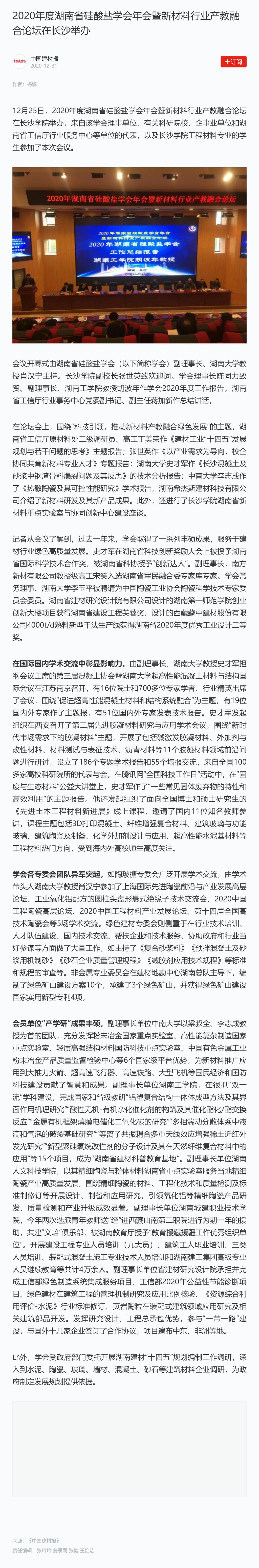 2020年度湖南省硅酸盐学会年会暨新材料行业产教融合论坛在长沙举办