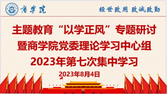 主题教育进行时丨商学院党委理论学习中心组举行2023年第七次集中学习暨“以学正风”专题研讨