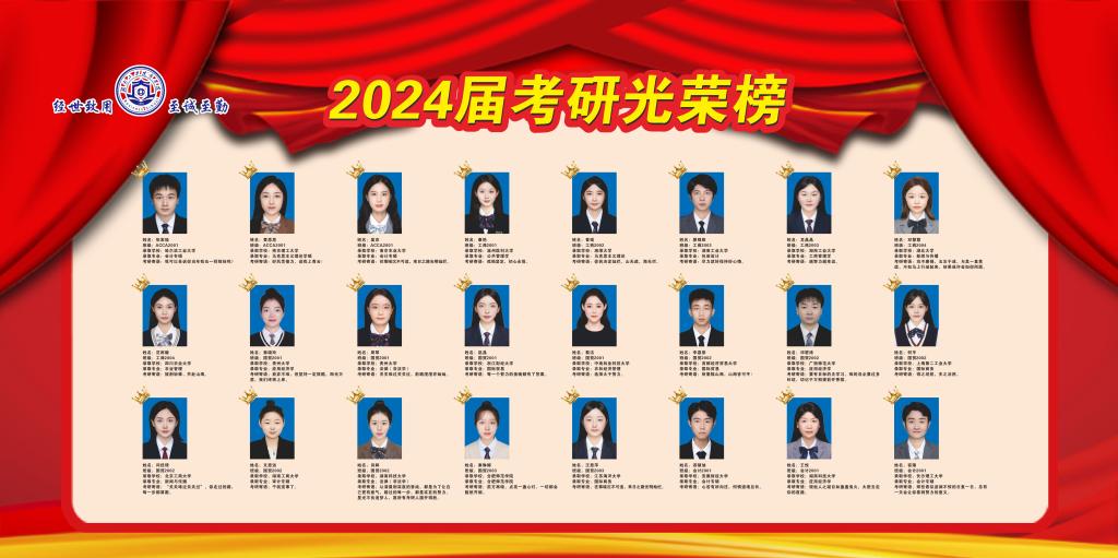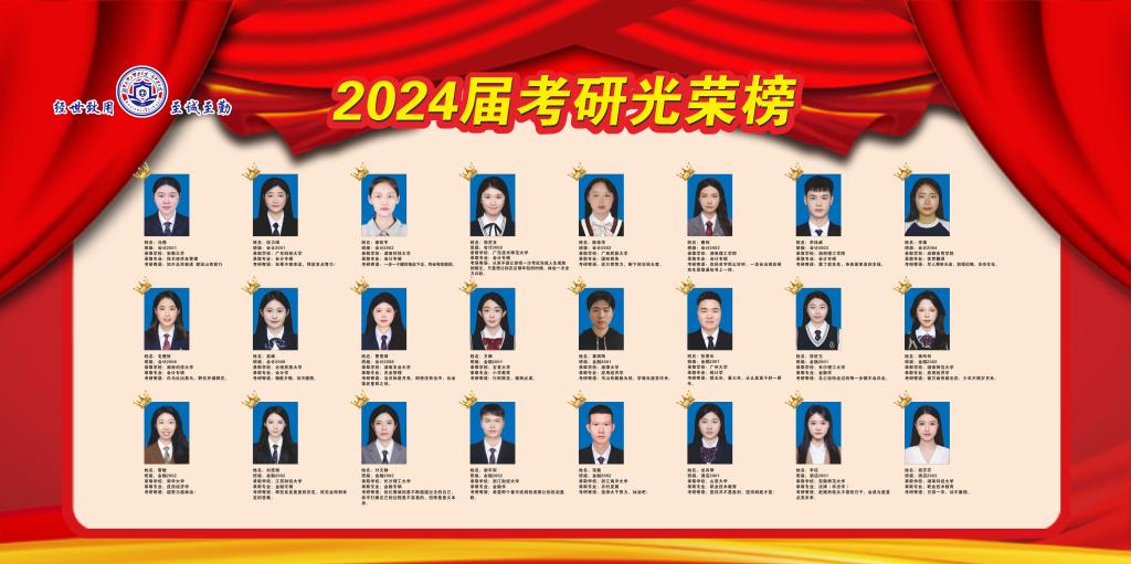 近年来,商学院聚焦“立德树人”根本任务,紧盯数智化人才培养目标,坚持把学生考研工作作为促学风、促就业的强有力抓手,在学风建设上出实招、下实功、见实效,用心、精心、暖心为学生办实事、解难题。下一步我院将继续践行“经世致用、至诚至勤”的院训精神,持续总结经验、强化激励,不断优化考研方案,全力推进教育教学工作再上新台阶,实现毕业生更高质量更加充分升学就业。愿考研学子们在未来的学术道路上继续发光发热,为祖国的繁荣昌盛贡献青春力量!(商学院 文/郭玉瑶)