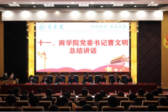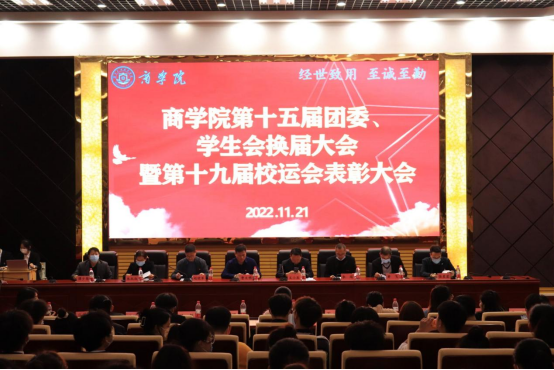 启航新征程,扬帆再出发。1121日晚,商学院在学校明翰报告厅举行第十五届团委、学生会换届大会暨第十九届校运会表彰大会。商学院党委书记曹文明、院长王小兵及全体院领导、辅导员、教研室主任、实验中心主任、学生代表及各学院团学代表参与此次大会,会议由张诗菡主持