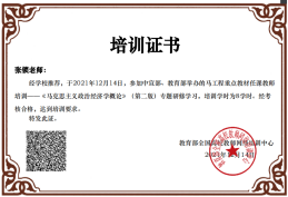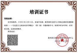 根据教育部关于“开展26种马工程重点教材任课教师培训通知”的精神,2021年12月14日---17日,我院组织了《西方经济学》和《马克思主义政治经济学概论》课程团队成员参加了培训,通过培训提升了教师的教育教学水平,能够帮助教师更精准把握教材的基本精神和主要内容,任课教师受益匪浅。同时我院在教材选用上严格要求老师统一使用马工程重点教材,任课教师遵循“先培训,后上课”原则,目的就是把马克思主义中国化的最新成果传授给学生,为国家培养合格的社会主义建设者和接班人。(商学院)