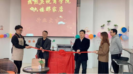 2022年3月7日,商学院大学生创业项目——六楼那家店校园咖啡屋举行了开业剪彩仪式,商学院院长王小兵、党委书记曹文明亲临指导,党委副书记赵晓军、副院长李闯、副院长黄飞、酒店管理教研室主任陈晓亮及部分教师参加了开业仪式。