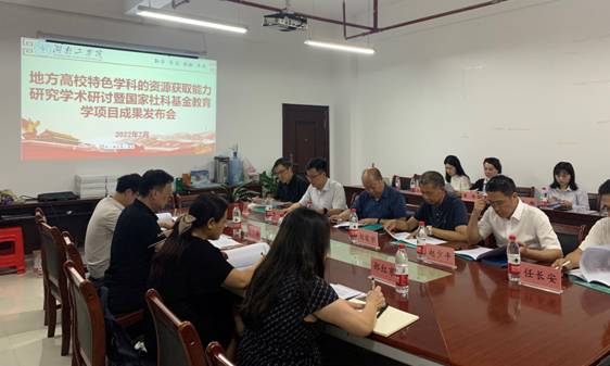 国家社科基金教育学项目《生态位视域下地方高校特色学科的资源获取能力研究》课题主持人王小兵教授从研究内容与方法、成果出版与应用、成果获奖与反响、主要观点与建议等方面介绍了研究成果。他指出,在学校职能部门的支持和领导下,在课题组全体成员的配合和努力下,课题组在中国高等教育、中国高校科技、中国教育报(理论版)等等权威刊物发表论文8篇;阶段性成果共计被引、下载近2000次;获得全国一级学会、湖南省社科联合会颁发一等奖2个,二等奖2个,获得省级教学成果奖1项、省级人才称号1个。课题所取得的一些阶段性成果已符合结题的基本要求。