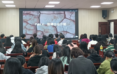 公司宣讲人员首先为同学们介绍了跨境电商B2B公司行业及岗位特点,并对同学们的择业、职业发展、面试注意事项等给出了宝贵的建议。然后就各个招聘企业的规模、业务情况、岗位需求、工作地点、薪资待遇、简历投递方式等作了详细介绍。
