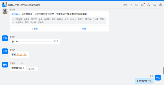 曹文明书记在线上就本次招聘会作了总结讲话,曹书记首先对组织本次宣讲会的企业方表示感谢,同时表示目前疫情形势比较严峻,就业压力大,告诫同学们不要眼高手低,要根据实际情况,合理定位,找工作时除了关注企业目前的状况外,更要注重个人成长与发展空间,同学们要认真了解、咨询各个单位,做到人岗相宜,符合专业方向和个人职业规划目标,并祝愿同学们毕业时都找到满意的工作。