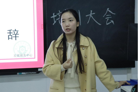 发展服务中心陈思维通过以下四点详细讲解权益委员职责:一是在班级宣传权益知识;二是加强班级与学院的联系;三是每周总结班级情况并反馈至商学院发展中心;四是配合发展服务中心各项活动。并通过介绍三种维权渠道及三方面维权的基本方法,全面维护学生各项权益。