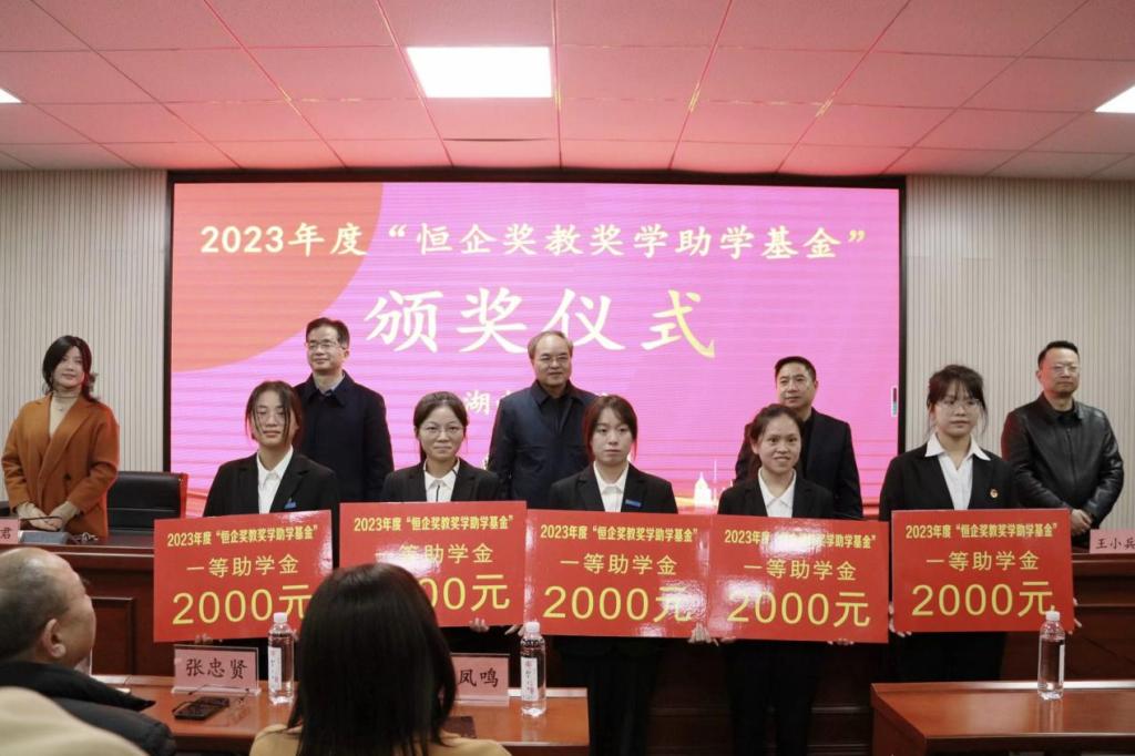 江健宣读了第三届“恒企奖教奖学助学基金”获奖受助师生名单。