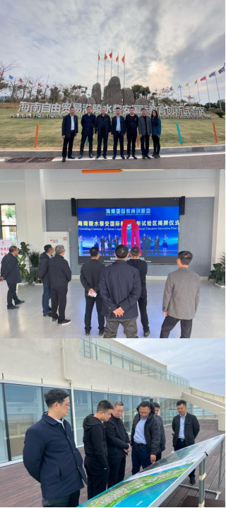 最后刘龙昌一行到达海南陵水黎安国际教育创新试验区管理局,在陈声运校友的陪同下参观考察了海南陵水黎安国际教育创新试验区,随后管理区经济发展部部长杜卫卫就国际教育创新试验区的智慧园区建设、市政公共配套、教育集成创新等方面向走访团作了详细介绍。