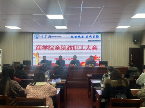 12月29日,商学院在学院302报告厅召开了2023年度期末全院教职工大会,全体院领导、全院教职员工参加,会议由商学院院长王小兵主持。
