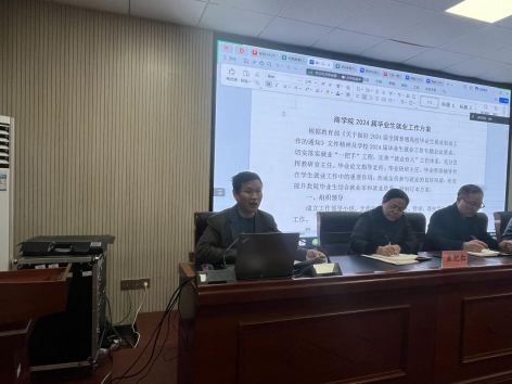 王小兵作总结讲话,他充分肯定了商学院一年来取得的成绩,简要总结了2023年学院在教学、科研、党建等方面取得的成绩,对全院教师一年来的辛勤付出表示感谢并送上美好新年祝愿。在会上,王小兵院长提出“三三三制”的就业育人模式,即“建立3支队伍”、“做好3个档案”、“构建3种机制”。由院领导统筹,抓细落实论文指导教师、班主任、辅导员三支队伍的工作职责;建立好《毕业生就业信息档案》、《毕业生就业帮扶档案》、《困难学生就业档案》三个档案;推进落实周报日报、分步推进、校友资源促就业三个机制。他强调,要深刻认识就业创业工作的重要意义,就业工作人人有责,要深刻认识做好毕业生就业工作的重要性和紧迫性,努力推动就业创业工作走深走实。同时强调:要增强使命感,要从讲政治、讲大局的高度深刻领会就业工作的重要意义;要加强荣誉感,要认清当前严峻的就业形势,引领我院毕业生在各类岗位上实现个人价值,极投身于祖国建设的浪潮中;要提高责任感,持续加强对重点群体毕业生的关心关爱,为学院毕业生的求职之路护航,切实提升人才培养质量。对于教师岗位聘用,他要求积极响应学校深化改革要求,优化教师队伍结构,做到把握政策不走样,做好选拔把好关。