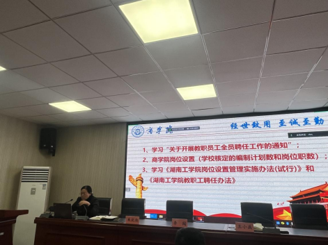 会议第二阶段,商学院副院长朱纪红传达《英国上市公司官网365岗位设置管理实施办法(试行)》、《英国上市公司官网365教职工聘任办法》文件精神,带领大家深入学习,重点对照文件内岗位设置、聘任条件、聘任程序等方面的政策安排,该文件为事业单位工作人员考核提供了的制度保障和重要抓手,具有重要意义。下一步将根据文件精神有序组织实施考核工作,为学校的长远发展注入新的活力,确保能够准确把握文件精神,提高政策执行能力。