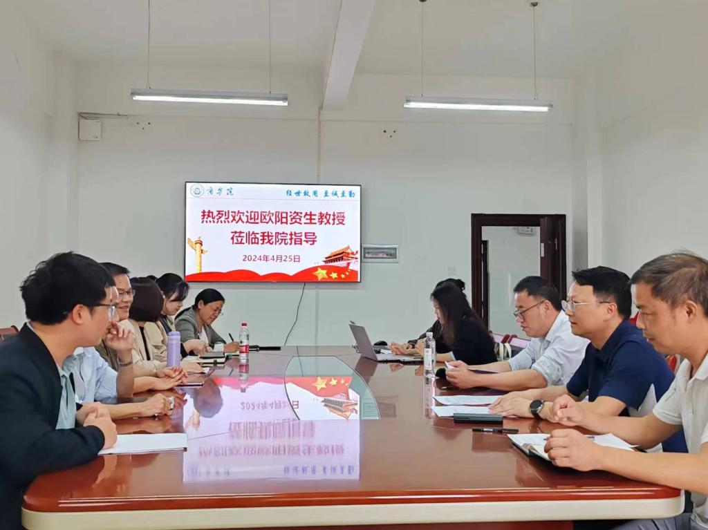 4月25日下午,湖南师范大学欧阳资生教授应邀来商学院进行学术讲座并进行国家社科基金项目申报指导。学术讲座在商学院302报告厅举行,商学院院长王小兵教授、学院部分青年骨干教师和金融工程专业学生代表参加,讲座由院长王小兵主持。