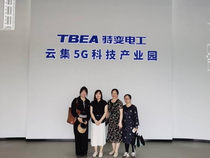 在衡阳市特变电工5G科技产业园,公司人力部林经理热情接待了到访的师生,并安排公司的技术人员带领师生参观了生产车间和企业文化墙,学生们不仅了解了特变电工的发展历程、企业文化和主要产品,还学习了变压器制造的基本原理和工艺流程。随后,林总与同学们开展了一场别开生面的交流会,对同学们的问题进行答疑解惑,气氛轻松愉悦。国贸教研室主任温毅娴和教研室骨干教师在交流会结束后与林总进行了座谈,温毅娴表示,希望企业能为学生提供更多的实践平台,培养更多具备实践能力和创新精神的国贸人才。公司人力部林经理表示,企业非常重视与高校的合作,希望通过此次访企拓岗活动,帮助学生更好地了解企业,提高学生的实践能力和就业竞争力。