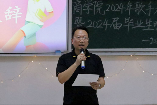 王小兵致开场词,他强调,此次大赛不仅为学生们提供一个展示音乐才华的舞台,用歌声诠释自己的青春梦想,同时也为毕业学子们的大学生活增添一抹色彩。青春不仅仅是年轻时的冲动和激情,更是心中永远燃烧的梦想与追求。他希望毕业学子们要秉承家国情怀,个人发展与社会进步密切相关、紧密相连,坚守初心、书写精彩人生;要拥抱未知世界,不断学习新的科技知识,了解当今中国,跟上时代发展;要勇于追逐梦想,主动善作善为,用开阔的胸襟、宽阔的眼界和勇毅的精神去成就一生的事业。最后向2024届全体毕业生致以最真诚的祝福,前程璀璨,逐梦长空!