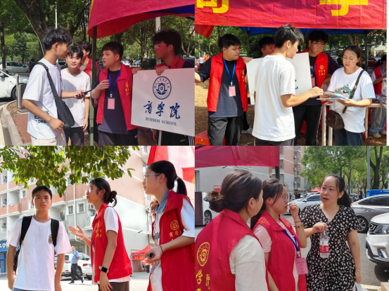 (商学院志愿者为新生及家长提供指引)