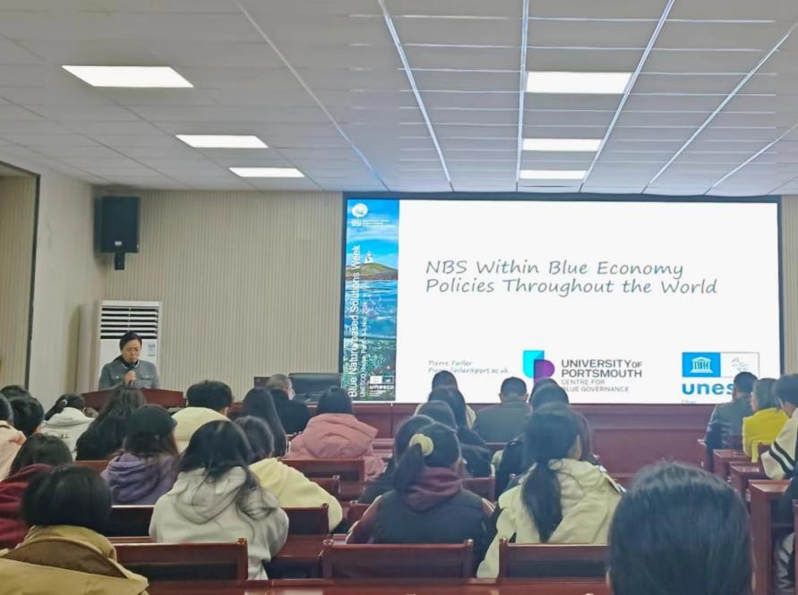 讲座最后,袁合对蓝色治理中心和联合国教科文组织进行简要介绍,并鼓励同学们积极参与其中。